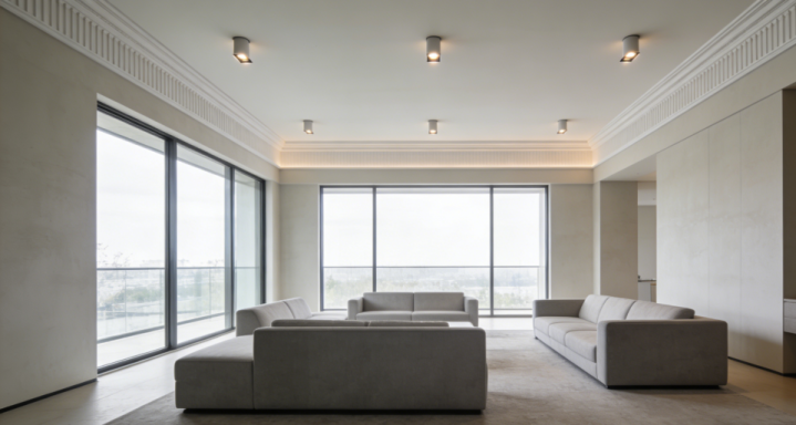 厚重的多层回形吊顶会压低层高,显得压抑。现在流行局部吊顶或干脆不吊顶。用简单的石膏线或双眼皮线条装饰,搭配明装射灯或无主灯设计,空间更显宽敞明亮。